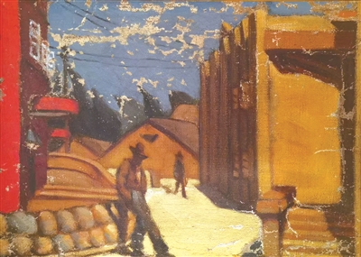 重返日本留學后,他創作了油畫《失業者》(1927)。這幅作品乍看是一幅描繪街角的小幅風景畫,只有兩個看不清楚面目的人影居于畫面中央,一近一遠。實際上,畫家要描繪的中心正是這兩個模糊的人影——他們是在資本主義壓迫下失去職業的勞動者。作品含蓄地揭露了工人與資本家之間的社會矛盾。然而,《失業者》這個畫題對于統治當局來說過于刺眼,因此在《良友》畫報刊載時,這幅畫改名為《彷徨者》。除了《失業者》以外,1934年發表的《逃荒者》《鋪路者》更是表現出許幸之批判現實主義的主張?!朵伮氛摺穼ι鐣械匿h芒藏于平淡、沉穩的畫面中,《逃荒者》則是直接將勞動人民的苦難生活化為明晃晃的利劍,刺向觀者的眼睛。
