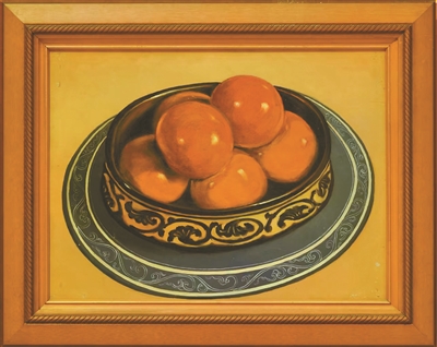 許幸之的靜物畫偏愛描繪陶瓷與水果植物。他選擇陶瓷,不僅因為它是中國的象征,更因為陶瓷在光線下所呈現的色澤,正是他在油畫語言中國化探索中亟欲解決的核心問題。陶瓷表面有釉,反光強烈,色澤又極為鮮艷,這種獨特質感在光影中所形成的視覺感受,成為許幸之努力捕捉與表現的對象。對許幸之而言,若能以油畫的語言完美再現中國陶瓷的質感色澤,將會是油畫在新中國語境下實現民族化的重要進展。