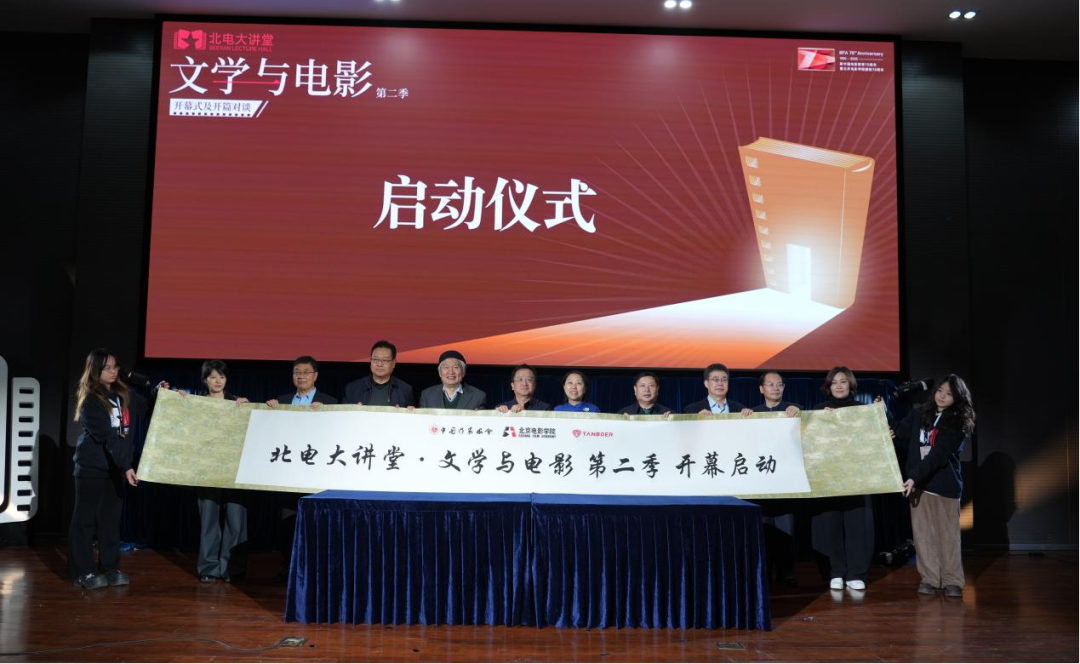活動現場,閻晶明、周志軍和其他八位嘉賓共同拉開卷軸,啟動“北電大講堂·文學與電影”第二季。光影交織的瞬間,象征著文學與電影在新時代的再度攜手與共生。中國電影文學學會會長王興東、作家趙德發和衣向東作為文學界學術觀察員參加活動。