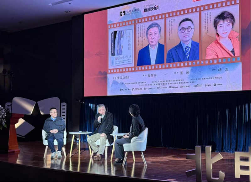 緊隨其后的北電大講堂第二季開幕對談,由上海市作家協會主席、作家孫甘露與中國電影家協會副主席、編劇張冀圍繞小說《千里江山圖》的影視化改編展開。