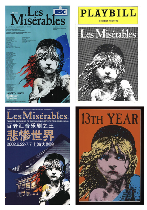 1985年倫敦初版及全球多個制作版本的海報,均使用上述珂賽特畫像作為主要元素