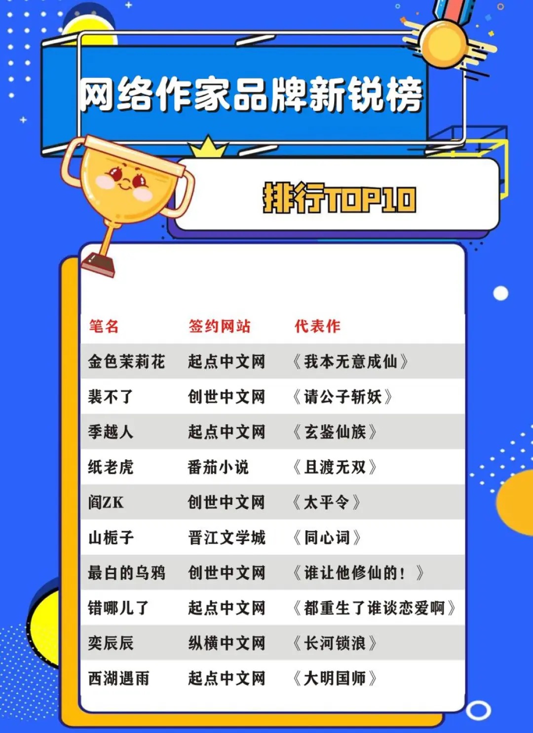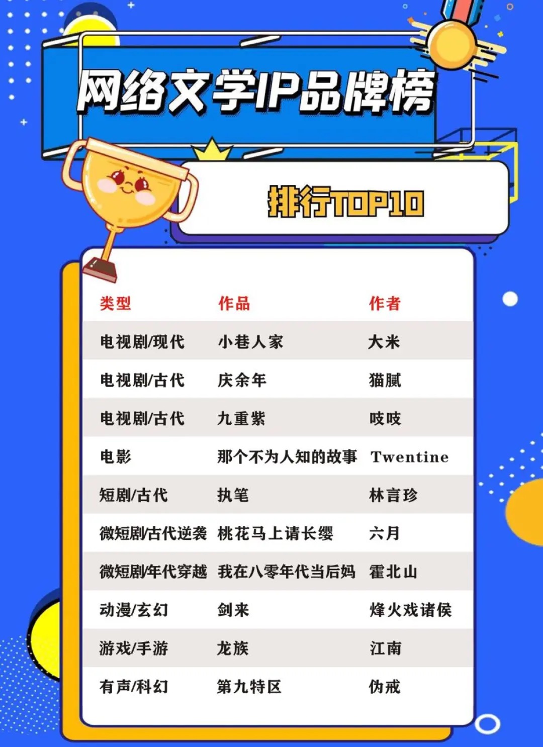 四大榜單揭曉,涵蓋作家、IP與海外傳播
