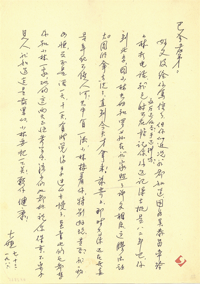 1986年冰心致巴金的一封信 中國現代文學館 藏