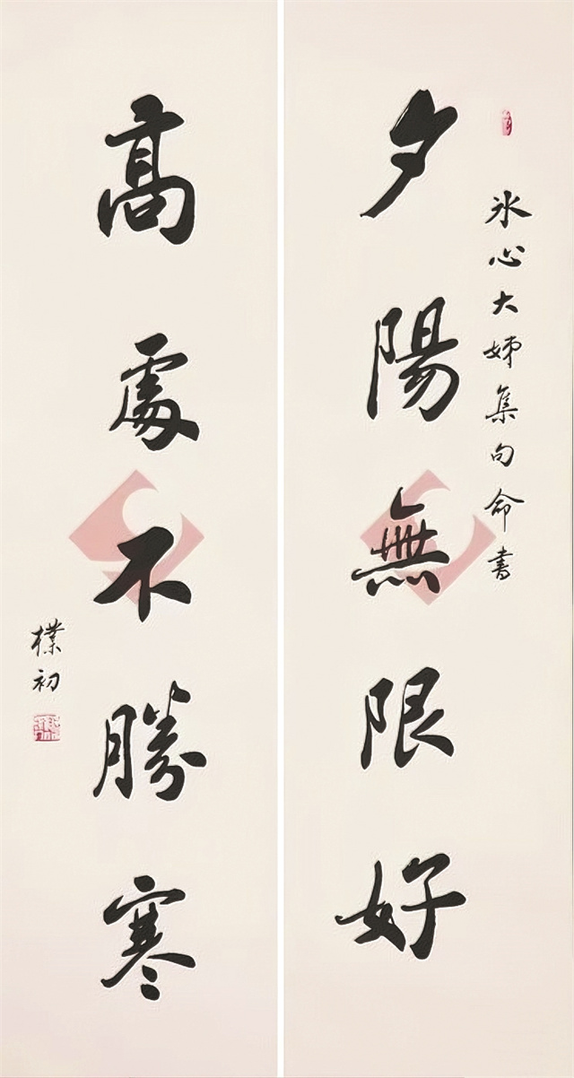 趙樸初書法短對聯“夕陽無限好,高處不勝寒”,冰心捐贈 中國現代文學館 藏
