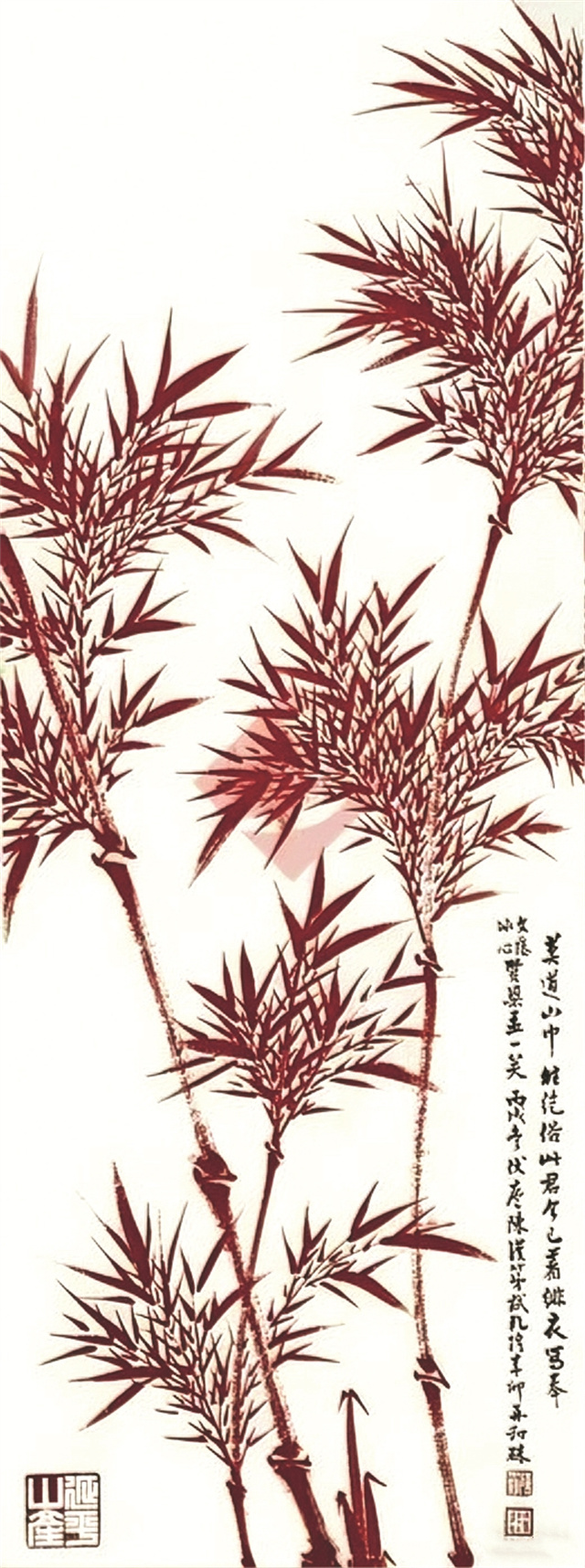 陳伏廬國畫《朱竹圖》(1946),冰心捐贈 中國現代文學館 藏